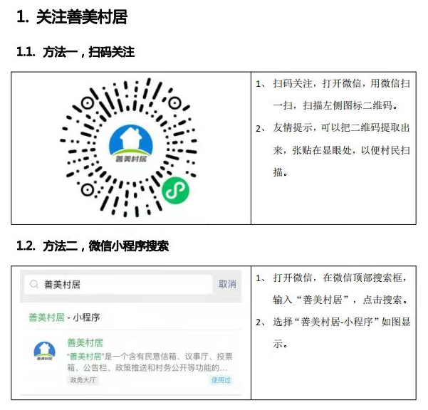 一、扫码或微信搜索进入“善美村居”小程序