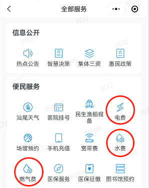 三、在便民服务栏内选择想要使用的服务,点击对应的服务图标便可转跳到对应的官方小程序内缴纳费用