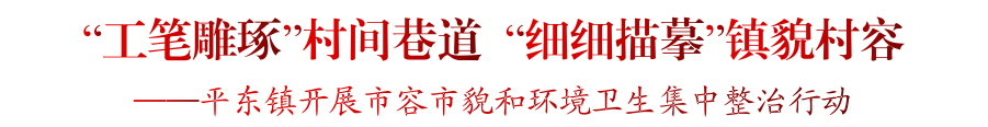 从满地飘飞的爆竹纸到宽敞亮堂、四通八达的干净街道;从潮湿泥泞的菜市场到整洁有序、清新靓丽的锦绣家园;近期,平东镇以人居环境整治为抓手,在全镇范围内开展市容市貌和环境卫生集中整治行动,以实际行动维护镇村环境的“颜值”高和“气质”佳,提升了辖区内居民的生活幸福感。