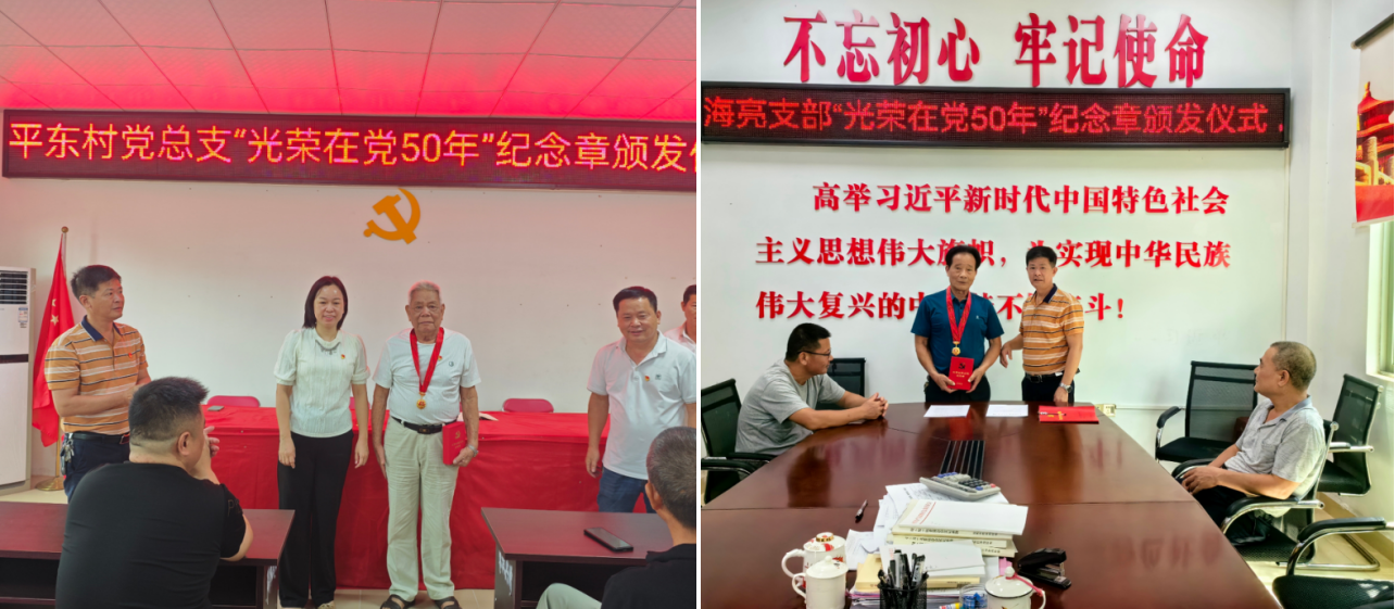 ◆在“光荣在党50年”纪念章颁发现场,老党员们精神矍铄、神采奕奕,党员代表与参加仪式的老党员们亲切握手,关心问候老同志现在的身体和生活状况,并为50年党龄的老党员们颁发纪念章。老党员们接过沉甸甸的纪念章激动不已全场用热烈的掌声,向荣获纪念章的老党员致以崇高敬意。他们纷纷感谢党组织一直以来的关心和爱护,将珍惜荣誉,坚定听党话、跟党走,继续发扬党的优良传统,始终以党员身份标准严格要求,矢志发挥余热,关心支持平东各项的事业发展。