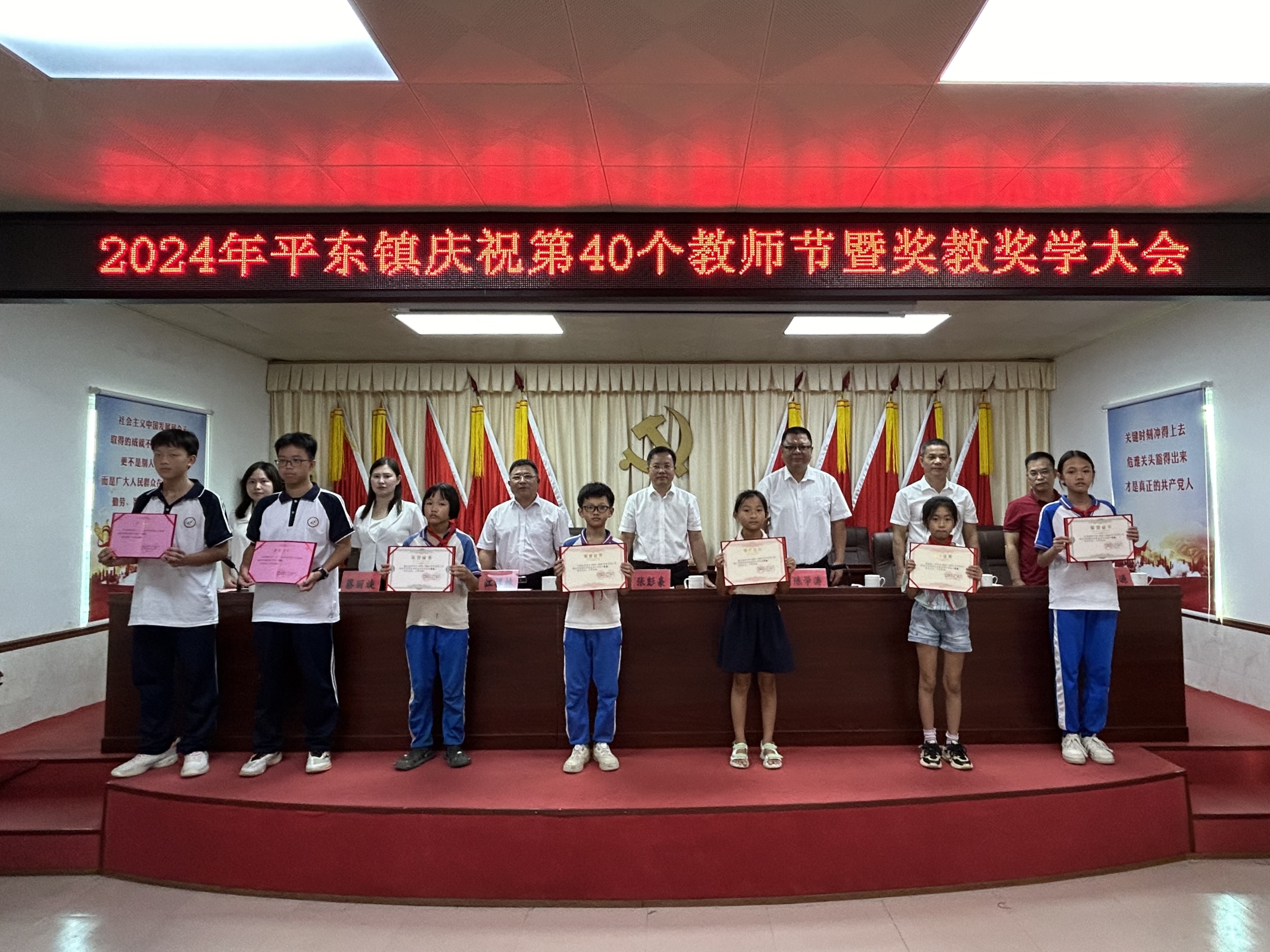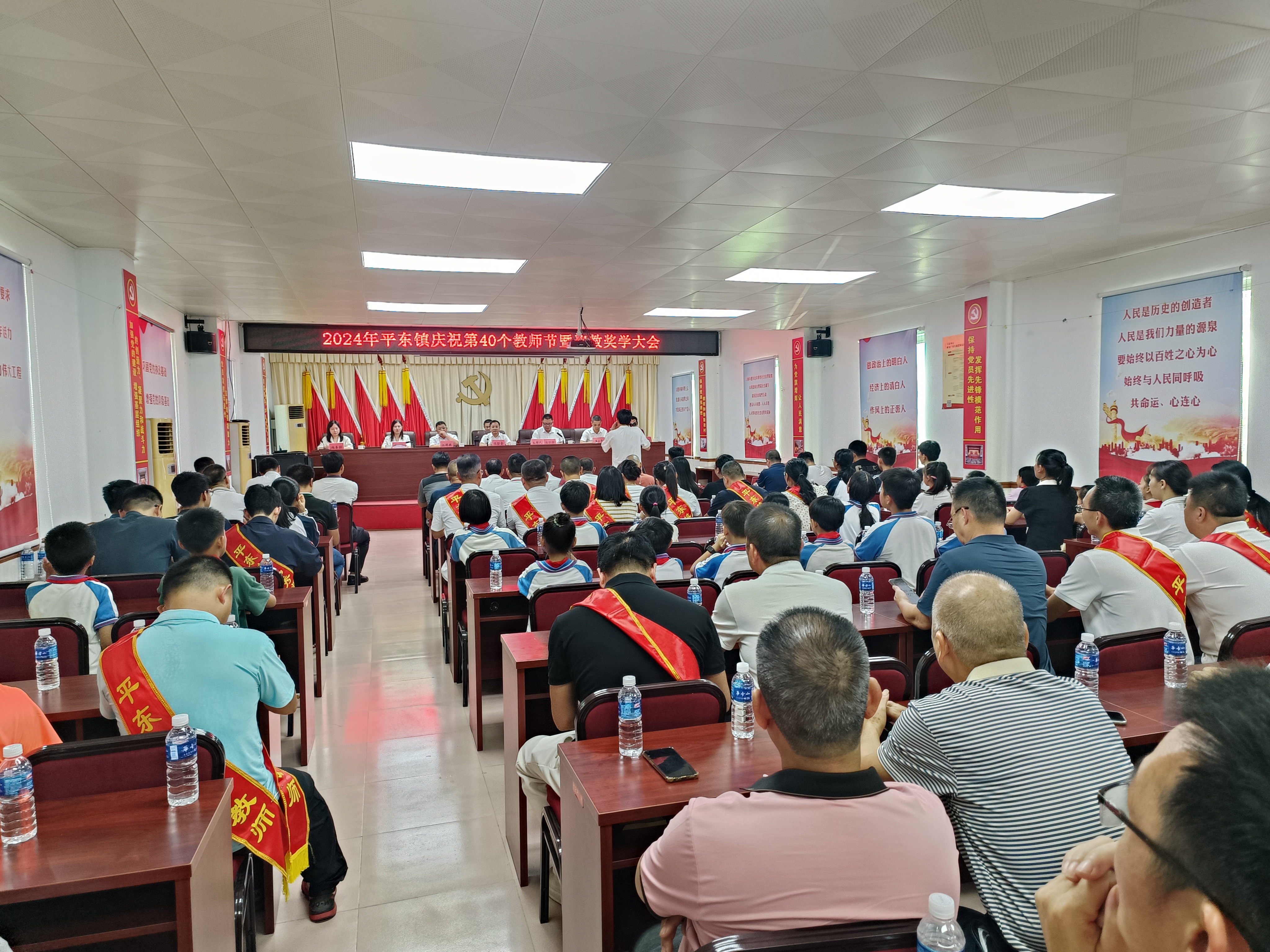 近日,平东镇隆重举行庆祝第40个教师节暨奖教奖学大会,镇领导班子成员,海丰县教育局党组成员、副主任督学江祥林,平东镇镇直机关企业事业负责人,各村(社区)支部书记,平东镇中小学全体教职工及中小学生代表参加大会,党委副书记、镇长陈学涛主持会议。