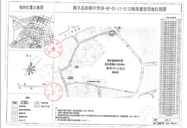2025年9月,海丰县自然资源局收到海丰县彭湃中学建设用地规划许可证的申请及有关材料。依照《广东省城乡规划条例》第二十九条的有关规定,现对相关事项公示如下:
