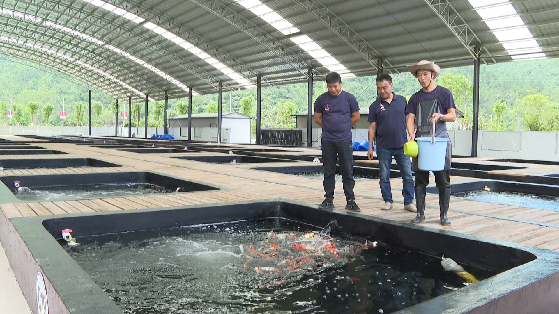 锦鲤产业园工人 李娘文:我以前是在家务农,以前收入不稳定。到富丽锦鲤工作了几个月,收入也稳定了。前几天,我看到竞拍会的场面,我对这个产业非常有信心。